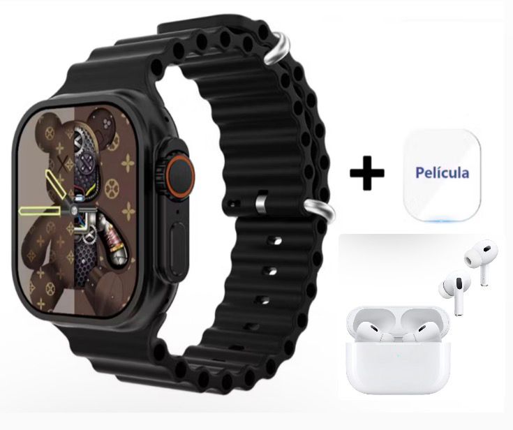 SmartWatch Preto + Fone de ouvido e Película de Brinde